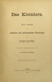 Das Kleinhirn : neue Studien zur normalen und pathologischen Physiologie / von Luigi Luciani ; deutsche Ausgabe besorgt von M.O. Fraenkel.