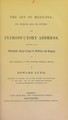 The art of medicine, its objects and its duties : an introductory address, delivered at the Manchester Royal School of Medicine and Surgery, on the opening of the winter session, 1860-61 / by Edward Lund.