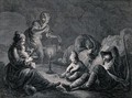 A gypsy family resting after a long journey. Engraving by Franco Pedro after Franco Maggiotto.