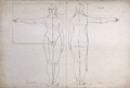 Proportions of the female body: front and back view of a female nude, with proportions marked. Lithograph by Martelli after C. Squanquerillo, ca. 1840.