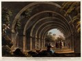 Under the arches of the ancient bath at Cacamo, Turkey. Coloured aquatint, 1803, after L. Mayer.