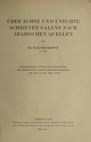 - Über echte und unechte Schriften Galens nach Arabischen Quellen.Meyerhof, Max, 1874-1945.Date: 1928