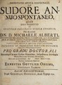 D. Michaelis Alberti ... Introductio in universam medicinam tam theoreticam quam practicam. Certis positionibus comprehensa, imprints in usum auditorii sui edita, qua verus et sincerus nexus inter theoriam et praxin, per praecipuas medicinae systematicae partes peculiari studio commonstratur et hoc ordine physiologia et pathologia medica praemittitur / [Michael Alberti].