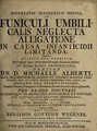 Dissertatio inauguralis medica, de funiculi umbilicalis neglecta alligatione in causa infanticidii limitanda ... / [Benjamin Gottlieb Wegener].