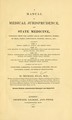 A manual of medical jurisprudence and state medicine, compiled from the latest legal and medical works, of Beck, Paris, Christison, Fodere, Orfila, etc. ... Intended for the use of legislators, barristers, magistrates, coroners, private gentlemen, jurors, and medical practitioners. Containing part I. Medical ethics ... Part II. Laws relating to the medical profession ... Part III. Medical jurisprudence and state medicine ... Part IV. Laws relating to the preservation of public health / By Michael Ryan.