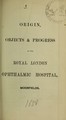 Origin, objects & progress of the Royal London Ophthalmic Hospital, Moorfields.