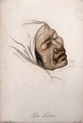 Head of a man with skin disease. Coloured stipple engraving by S. Tresca after Moreau-Valvile, c. 1806.