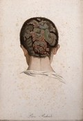A head of a man with a skin disease on his scalp; back view. Coloured stipple engraving by S. Tresca after Moreau-Valvile, c. 1806.
