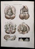 Several sections of diseased brain, numbered for key. Coloured lithograph by Batelli after Ottavio Muzzi, c. 1843.