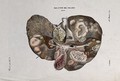 Several examples of diseased placenta, numbered for key. Lithograph by Ridolfi after Ottavio Muzzi, c. 1843.