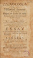 Loimologia: or an historical account of the Plague in London in 1665: with precautionary directions against the like contagion ... To which is added an Essay on the different causes of pestilential diseases, and how they become contagious: with remarks on the infection now in France and the most probable means to prevent it spreading here. By John Quincy / [Nathaniel Hodges].