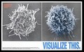 Two enlarged images of T-cells one infected with HIV by the Frederick Cancer Research and Development Center. Colour lithograph by Nancy Burson and Kunio Nagashima, 1991.