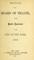Manual of the board of health of the health depatment of the city of New York, 1874.