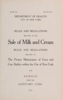 Rules and regulations relating to the sale of milk and cream : rules and regulations relating to the proper maintenance of cows and cow stables within the City of New York and extracts from the Sanitary code.