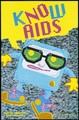 A pixelated square figure with glasses, arms, legs and trainers with a speech bubble containing the words 'Know AIDS'; an advertisement for AIDS facts by the New York State Department of Health. Colour lithograph.