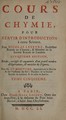 Cours de chymie, pour servir d'introduction à cette science ... / par Nicolas Le Fèvre.