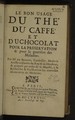 Le bon usage du thé, du caffé et du chocolat pour la preservation et pour la guerison des maladies / [Blégny (Nicolas)].