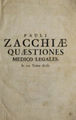 Quaestiones medico-legales, in quibus omnes eae materiae medicae, quae ad legales facultates videntur pertinere, proponuntur, pertractantur, resolvuntur ... Liber I[-IV] / [Paolo Zacchia].