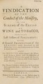 A vindication of the conduct of the Ministry, in the scheme of the excise on wine and tobacco, proposed last sessions of Parliament. With a general examination of the reasons which determined the said ministry to it; the consequences and events it would have had.