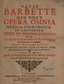Pauli Barbette med. doct. & practici ... Opera chirurgico-anatomica, ad circularem sanguinis motum, aliaque recentiorum inventa, accommodata. Accedit in hac editione De peste tractatus, observationibus illustratus / [Paul Barbette].