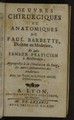 Œuvres chirurgiques et anatomiques ... Appropriées à la circulation du sang, et autres découvertes des modernes: avec un traité de la peste enrichi d'observations / [Paul Barbette].