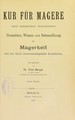 Kur fur Magere nach diatetischen Grundsatzen : Ursachen, Wesen und Behandlung der Magerkeit und der damit zusammenhangenden Krankheiten / dargestellt von Paul Berger.