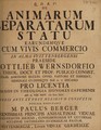 De animarum separatarum statu earundemque cum vivis commercio / [Paul Berger].
