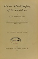 On the handicapping of the first-born : being a lecture delivered at the Galton laboratory, University College, London, March 17, 1914 / by Karl Pearson.