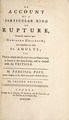 An account of a particular kind of rupture, frequently attendant upon new-born children; and sometimes met with in adults; viz. that in which the intestine, or omentum, is found in the same cavity, and in contact with the testicle / By Percival Pott.