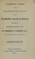 Valedictory address to the graduating class of the Philadelphia College of Medicine : delivered on Saturday, March 1, 1851 / by Frederick A. Fickardt.