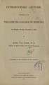 Introductory lecture delivered in the Philadelphia College of Medicine : on Saturday evening, November 4, 1848 / by Christopher C. Cox ; published by the students of the College.