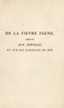 De la fièvre jaune observée aux Antilles et sur les vaisseaux du Roi, considérée principalement sous le rapport de sa transmission / [Pierre François Kéraudren].