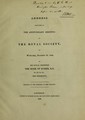 Address delivered at the anniversary meeting of the Royal Society, on Wednesday, November 30, 1836 / by His Royal Highness the Duke of Sussex, K.G., &c. &c. &c., the President ; printed at the request of the Fellows.