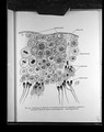 Copy of printed microscope image referenced as "Parts of 2 cells with surrounding collagen fibrils grown in Locke-Bouillon mechanism"