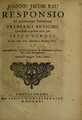 Responsio ad qualemcumque Defensionem Frederici Ruyschii ... pro septo scroti. In qua hujus litis anatomicae detegitur origo: et septum scroti ... fictitium esse, clare demonstratur. Adjuncta est ... auctoris Epistola [de inventoribus septi scroti] / [Johannes Jacobus Rau].