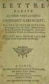 Lettre ecrite au Sieur René-Jacques Croissant Garengeot ... Au sujet de la nouvelle edition de son Traité d'opérations de chirurgie / [Anon].