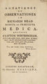 Bibliotheca Meadiana, sive catalogus librorum Richardi Mead, M.D., qui prostabunt venales sub hasta / apud Samuelem Baker. Londini, die lunæ 18vo Novembris, M.DCC.LIV. iterumque die lunæ, 7mo Aprilis, M.DCC.LV.