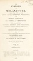 The anatomy of melancholy : what it is, with all the kinds, causes, symptomes, prognostickes, & severall cures of it : in three partitions with their severall sections, members, and subsections : philosophically, medicinally, historically opened & cut up / by Democritus junior.