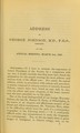 Address of George Johnson, M.D., F.R.S., President of the Royal Medical and Chirurgical Society of London, at the annual meeting, March 2nd, 1885.