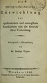 Die weltgeschichtliche Entwicklung der epidemischen und contagiösen Krankheiten und die Gesetze ihrer Verbreitung : Inaugural-Abhandlung / von Rudolph Wagner.