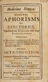 Medicina statica: being the Aphorisms of Sanctorious / translated into English with large explanations. Wherein is given a mechanical account of the animal oeconomy, and of the efficacy of the non-naturals, either in bringing about or removing its disorders: also with an introduction concerning mechanical knowledge, and the grounds of certainty in physick. By John Quincy.