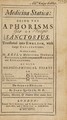 La medicina statica ... Divisa in sette sezioni / con comentari di Martin Lister ... e i Canoni della medicina de' solidi e di Giorgio Baglivi ... Aggiuntivi gli Aforismi d'Ippocrate e i suoi Presagii: nelle due lingue, latina ed italiana, con molte altre cose ... Idea, e fatica dell'Abate Chiari. Da Pisa.
