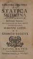 De statica medicina aphorismorum sectiones septem / accedunt in hoc opus commentarii Martini Lister et Georgii Baglivi.