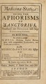 Medicina statica: : being the aphorisms of Sanctorius / translated into English, with large explanations. ; To which is added, Dr Keil's Medicina statica Britannica, with comparative remarks and explanations. ; As also Medico-physical essays ... By John Quincy.