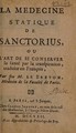 La medecine statique de Sanctorius où l'art de se conserver la santé par la transpiration / Traduite en français par feu M. le Breton.
