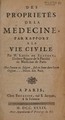 Des proprietés de la médecine, par rapport a la vie civile / [Louis de Santeul].