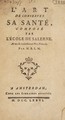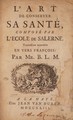 L'art de conserver sa santé, composé par l'Ecole de Salerne. / Traduction nouvelle en vers françois: par Mr. B. L. M.