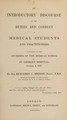 An introductory discourse on the duties and conduct of medical students and practitioners : addressed to the students of the Medical School of St. George's Hospital, October 2, 1843 / by Sir Benjamin C. Brodie.