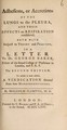 Adhesions, or accretions of the lungs to the pleura, and their effects on respiration considered ... in a letter to Dr. George Baker ... To which is now added, a vindication thereof from some misrepresentations / [Malcolm Flemyng].