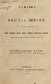 Remarks on medical reform, in a letter addressed to the Right Hon. Sir James Graham / By Sir James Clark.
